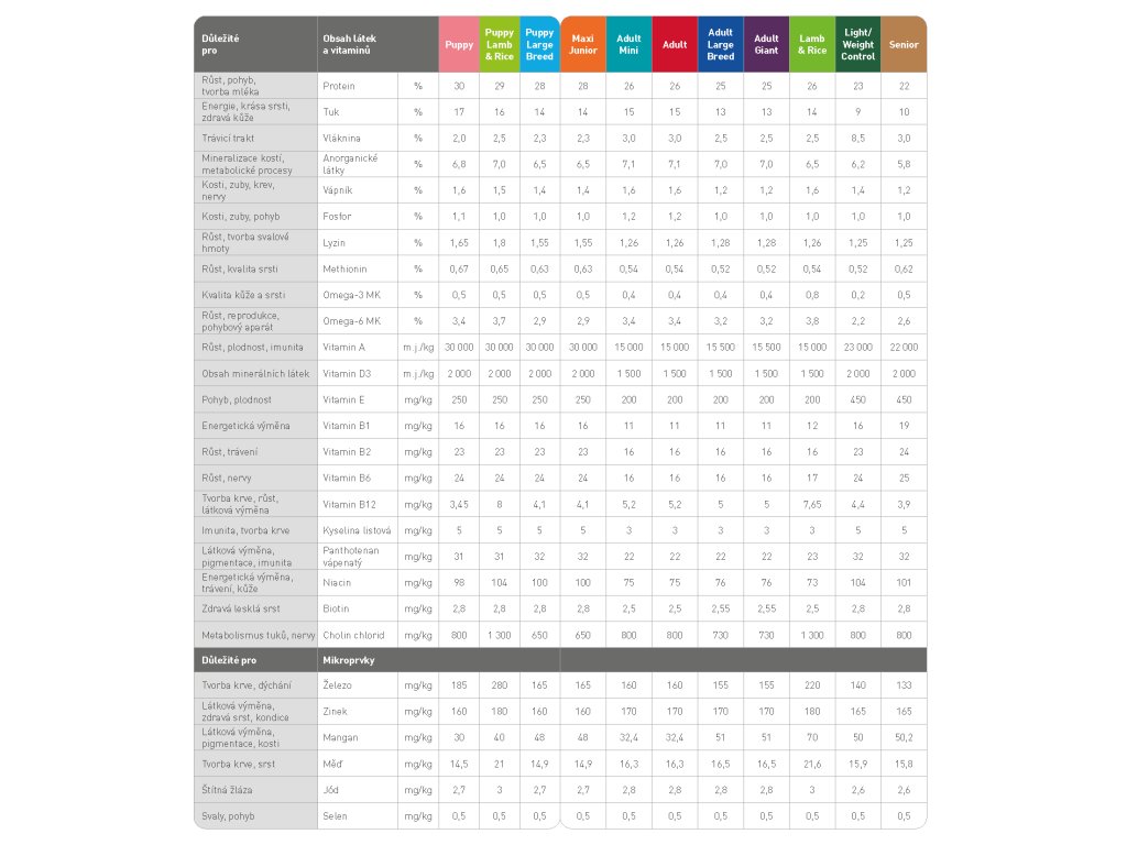 Kompletné krmivo pre šteňatá, brezivé a dojčiace suky veľkých a obrích plemien. 74 % proteínov živočíšneho pôvodu.