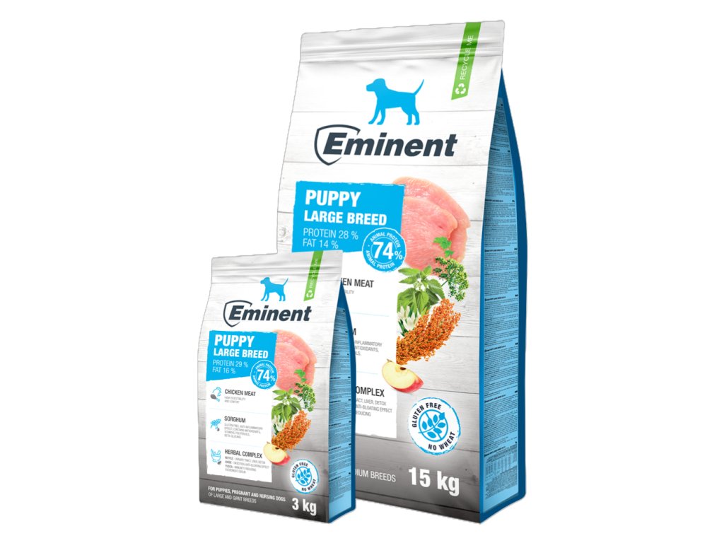 Kompletné krmivo pre šteňatá, brezivé a dojčiace suky veľkých a obrích plemien. 74 % proteínov živočíšneho pôvodu.
