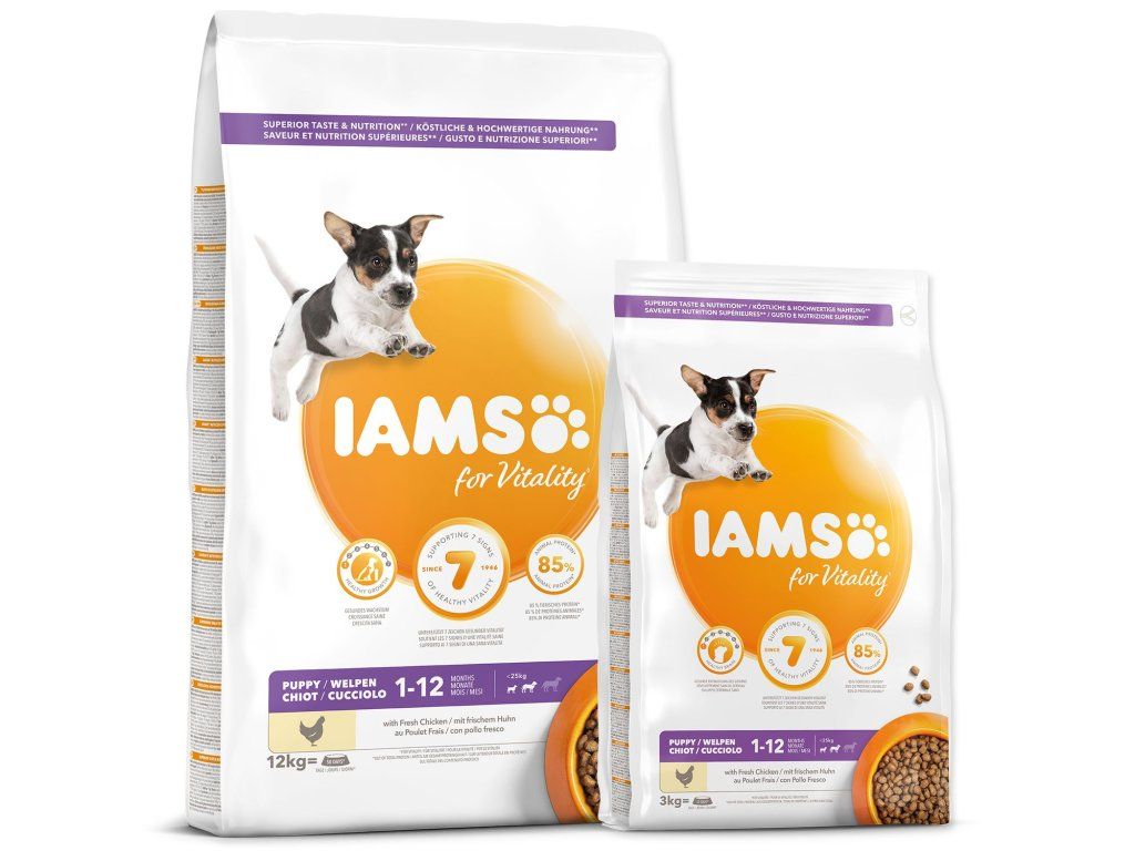 Krmivo IAMS for Vitality pre šteňatá malých a stredných plemien je 100% kompletné a vyvážené odborníkmi zostavené krmivo, ktoré bude vášmu šteňaťu svedčiť. Naša nová a vylepšená receptúra pre šteňatá s čerstvým kuracím mäsom je založená na kvalitných živočíšnych bielkovinách, ktoré boli starostlivo vybrané, aby podporovali sedem znakov zdravej vitality šteňaťa. Aby boli šteňatá zdravá, aktívna a plná energie, obsahujú naše lahodné receptúry až 85% živočíšnych bielkovín z kuracieho mäsa (z celkového obsahu bielkovín).