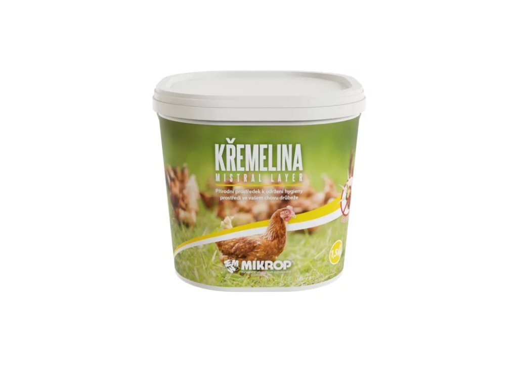 MIKROP Kremelina proti čmelíkom Mistral Layer je prírodný hygienický prípravok určený na zamedzenie výskytu čmelíka kurieho a iných roztočov v chovoch hydiny. Obsahuje kremelinu so špecifickou frakciou, obohatenú o esenciálne oleje, montmorillonit a riasy, ktoré spoločne prispievajú k vytvoreniu nevhodného prostredia pre parazity.